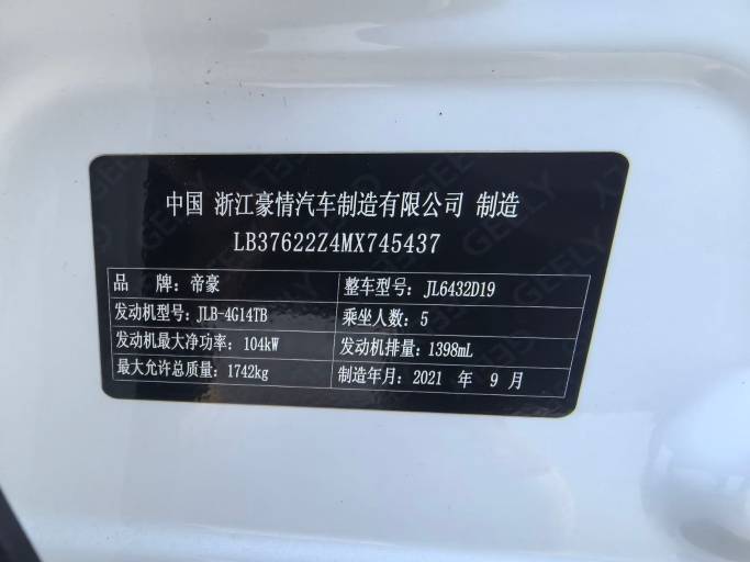 Geely Binyue 1.4T 141HP 2WD 2021 | VIN 745437