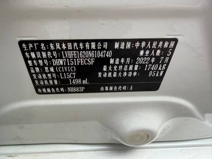 Honda Civic 1.5L 129HP 2WD 2022